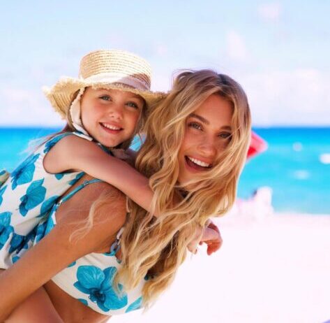 Para o dia relaxante na praia, Ana Paula optou por um biquíni de cor branca decorado com flores azuis, um visual que capturou as tendências de moda do verão. Vicky, por sua vez, estava vestida com um maiô que seguia a mesma estampa floral. O toque do babado no traje de Vicky, com aparência de um pequeno vestidinho, adicionou um charme extra ao look da menina. Completar o visual com um chapéu de palha e lenço conferiu um toque de sofisticação ao dia ensolarado de ambas.