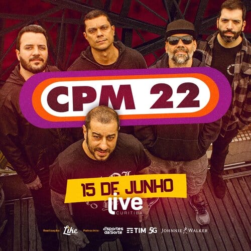A banda CPM22 retorna a Curitiba no dia 15 de junho no palco da Live Curitiba. Símbolo do rock nacional dos anos 2000, a banda paulista chega com sucessos novos e também os antigos, marcando uma geração e fidelizando fãs até os dias de hoje.