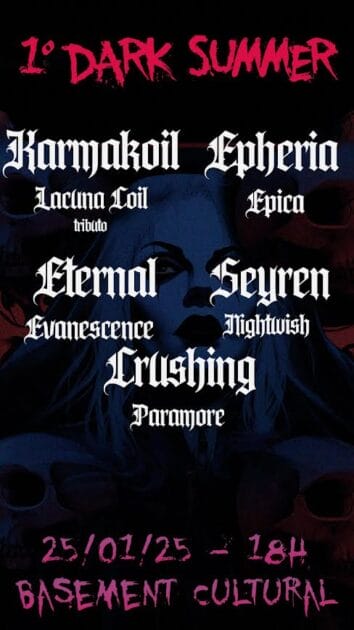 No próximo sábado, 25 de janeiro de 2025, Curitiba será palco do 1° DARK SUMMER, um evento que promete começar o ano com muita energia e música de qualidade no Basement Cultural. A noite contará com apresentações de cinco bandas que homenageiam grandes nomes do metal sinfônico e rock alternativo: