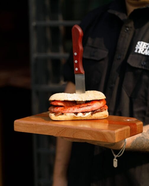 Entre os pratos principais, estão opções como o Mignon com Risoto Caccio Peppe (R$85) e o Ojo de Bife com purê 3 raízes (R$64). O cardápio também inclui sugestões de entradas, como o Ceviche (R$42) e a Provoleta (R$35), além de hambúrgueres, com destaque para o Burger 7Tragos (R$42).