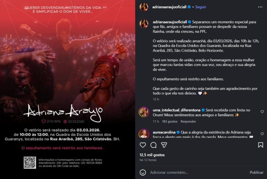 Notícias Comunidade Mineira Despede-se da Sambista Adriana Araújo em Belo Horizonte03/03/20262 min de leitura